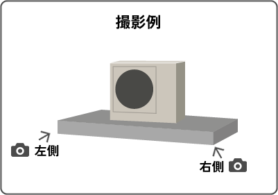 室外機が地面に設置されている場合、設置部分のサイズと劣化具合を確認するため、左右それぞれ撮影してください。